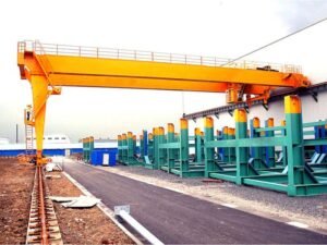 Smooth lifting and trolley travel improve workflow in industrial semi gantry crane,warehouse gantry system,and port loading applications.