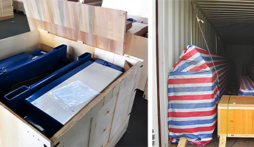 Accessories are packed in fumigated wooden crates for export.
